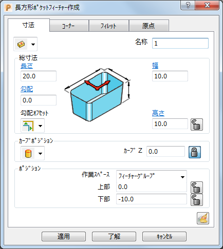 コーナー - フィーチャーのコーナー半径を指定します。