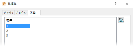 をクリックし、交差を削除します。交差 1 が削除され、残りの交差である 2 と 3 が、1 と 2 に変更されます。