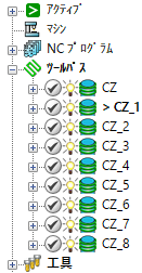 ツールパスグループ順序、および、工具変更順序 を選択すると、ツールパスはツールパスグループ内の工具使用状態で並べ替えられます。