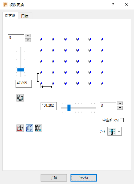 例えば、以下のように、CZ 等高線ツールパスで複数変換を作成します。
