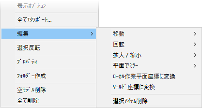 回転- XYZ いずれかの方向で、モデル/選択サーフェスを指定角度分回転します。