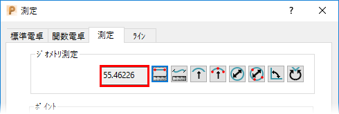 ポイントを選択すると、測定 ダイアログの 距離 項目に Z 距離が表示されます。