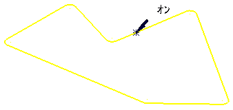 - 切り取り位置でカーブをクリックします。カーソルがナイフに変化し、カーブが黄色になります。