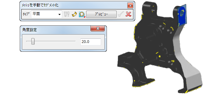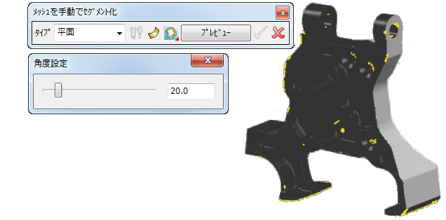 手動セグメント化を使用してメッシュを個別にセグメント化し、複数サーフェスをフィッティングします。