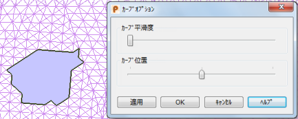 - [メッシュツール]タブ > [作成]パネル > [バウンダリー]をクリックし、選択したメッシュのバウンダリーでカーブを作成すると、[カーブオプション]ダイアログが表示されます。
