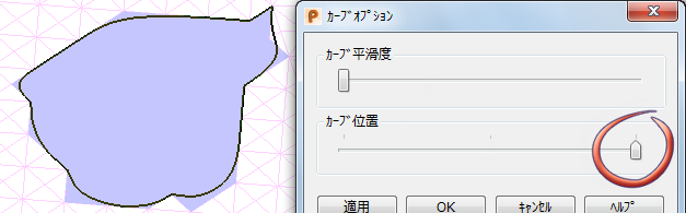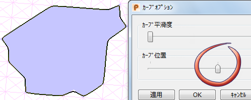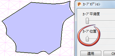 - カーブ位置 スライダーを移動させて、閉じた領域に対してカーブのポジションを調整します。 カーブに対して 3 つの位置があります。