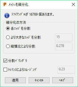 - 細分化の方法 を選択します。この方法に基づいて新規トライアングルの頂点が算出されます。