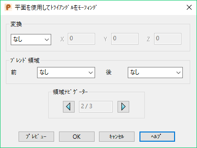 メッシュモデルの、1 つ、または、複数の領域を変換します。 平面で領域を定義します。