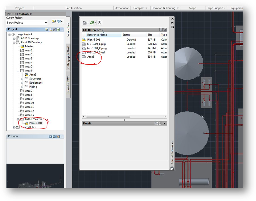 オルソ図面の抽出元となるマスター モデルを作成することにより、オルソ図面を最適に管理します。作成方法は、領域マスター モデルと同じです。適切な領域マスター モデルは外部参照であり、最終図面で必要なコンポーネントを表示するために画層を管理します。