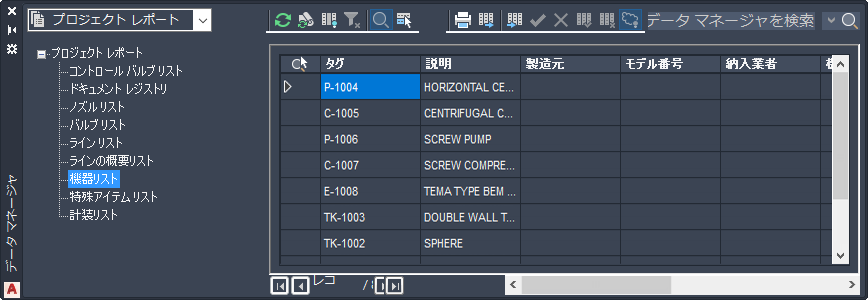 - [データ マネージャ]のドロップダウン リストで、[プロジェクト レポート]をクリックします。