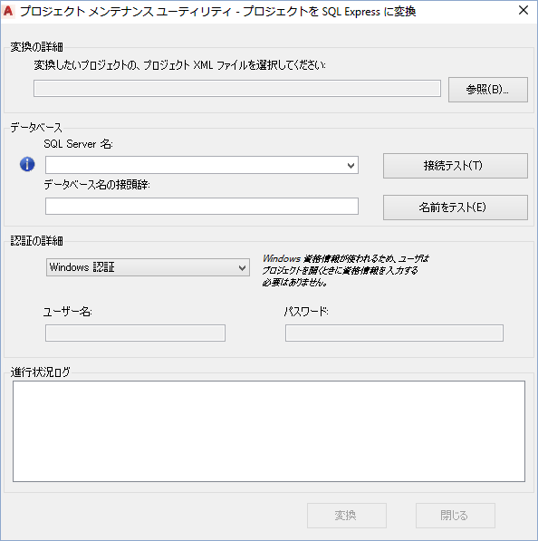 - プロジェクト XML ファイルのパスを入力または参照して SQL Express に変換します。