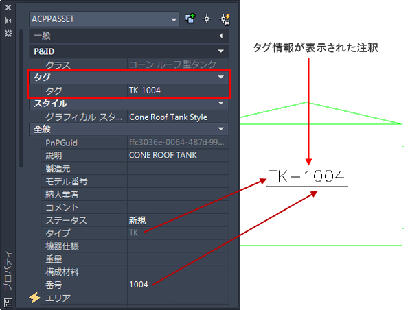 | テキストではなくデータ。タグ形式によって定義されたサブパーツで構成されます。 | 注釈スタイルのブロック定義で定義されたテキストです。このテキストは、コンポーネントまたはライン セグメントのタグ プロパティに含めることができます。このテキストはタグではなく、注釈になります。 |