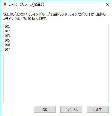 選択したライン セグメントをリスト内の指定したライン グループに追加します。