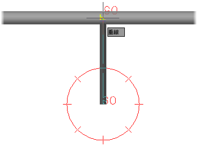 [Shift]を押しながら作図領域内を右クリックし、オブジェクト スナップ(垂線など)をクリックします。