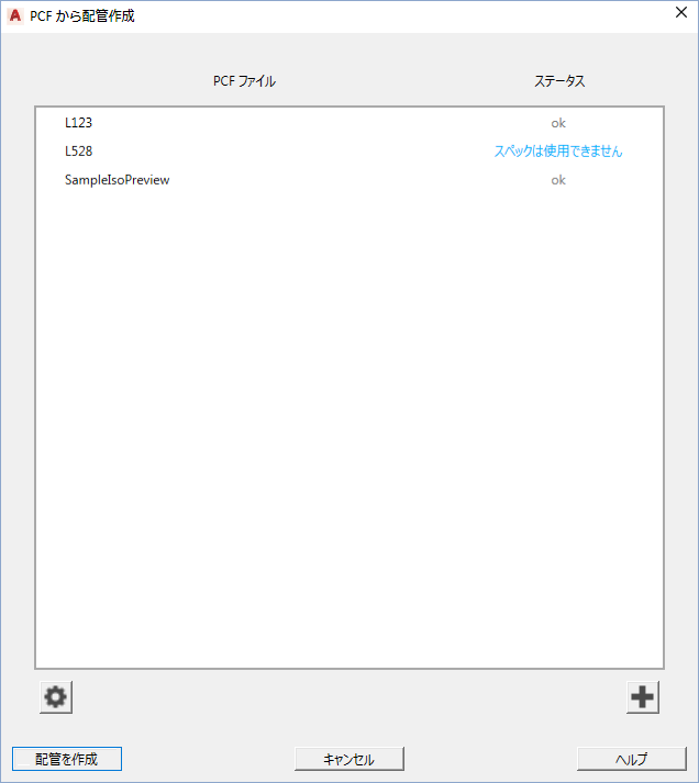 [PCF から配管作成]はリボンから使用できます。