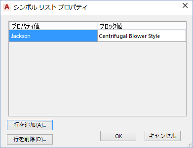 - [行を追加]ダイアログ ボックスの[プロパティ値]に、新しいシンボル リスト プロパティとなる名前を入力します(例: Jackson)。[OK]をクリックします。