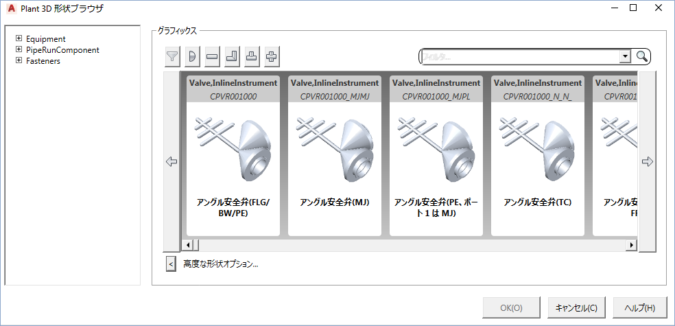 [Plant 3D 形状ブラウザ]ダイアログ ボックス