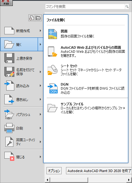 メニューの使用方法の詳細については、AutoCAD ヘルプ システムの「アプリケーション メニュー 」を参照してください。