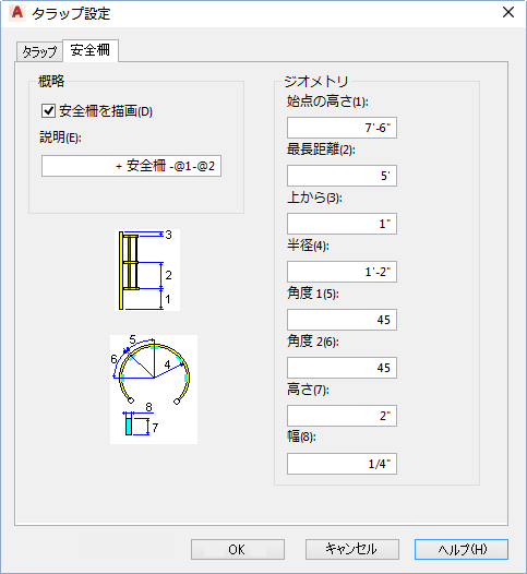 タラップの最上部と安全柵断面の間の距離を指定します。