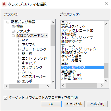 - クラス リストで、[パイプ配管コンポーネント]をクリックします。