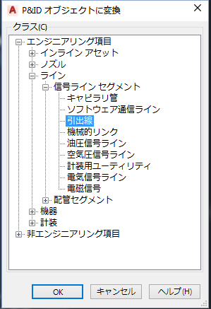 [P&ID オブジェクトに変換]ダイアログ ボックス