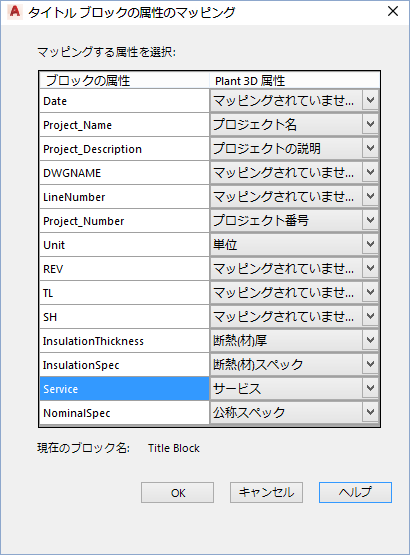 タイトル ブロックの属性を Plant 3D のプロパティにマップします。