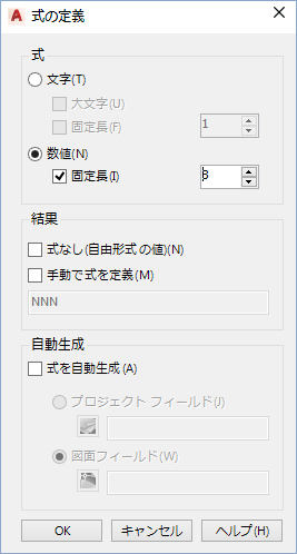 - [式の定義]ダイアログ ボックスの[結果]で、[式なし(自由形式の値)]をクリックします。[OK]をクリックします。