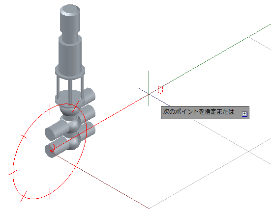- 最初の点に対して、[点]スナップ(nod)を使用して、バルブの一方のポートを指定します。