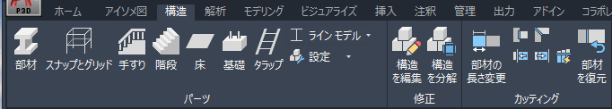 [構造]タブは 3D 配管ワークスペースの一部です。
