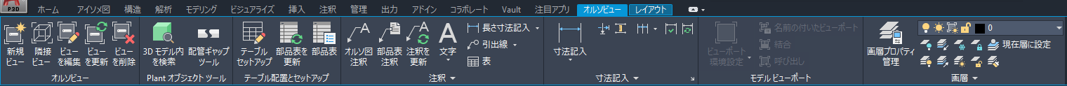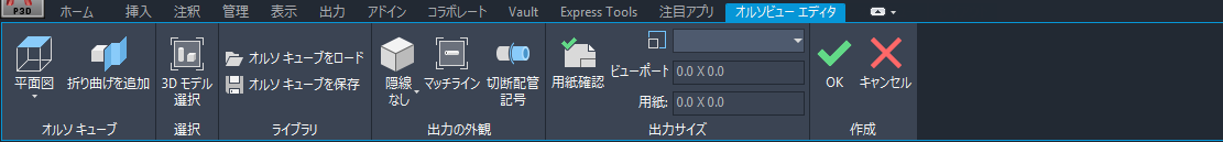 [オルソビュー エディタ]コンテキスト タブは 3D 配管ワークスペースの一部です。