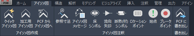 [アイソメ図]タブは 3D 配管ワークスペースの一部です。