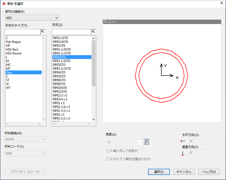 Y 軸を Z UCS に揃えて、構造オブジェクトの方向を設定します。