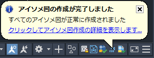 - 少し待つと、「アイソメ図の作成が完了しました」というバルーン メッセージが表示されます。