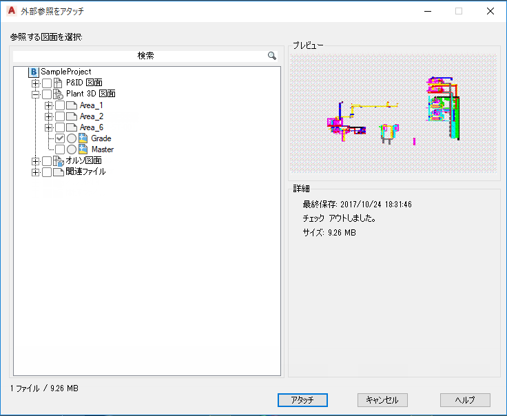 コラボレーション プロジェクトからプロジェクト図面ファイルをアタッチします。