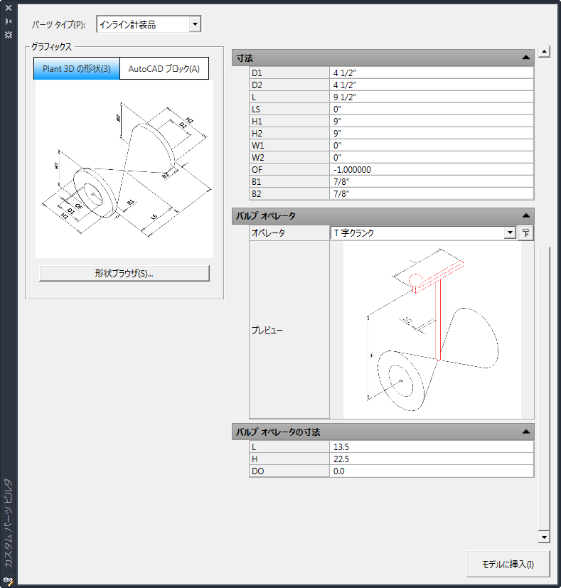 [Plant 3D 形状ブラウザ]ダイアログ ボックスが表示されます。