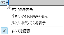 | リボンを最小化する優先方法を指定する | リボン タブの右側で、右矢印をクリックして目的の動作([タブのみを表示]、[パネル タイトルのみを表示]、[パネル ボタンのみを表示]、[すべてを循環])を選択します。