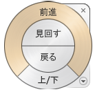 SteeringWheels の[前進]ツールを使用すると、現在の視点と回転中心との間の距離を増減できます。