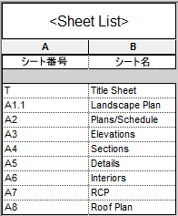 Revit LT では、シート リストの[シートの順序]列が非表示になります。
