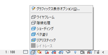 3D ビューの背景を指定するには、ビュー コントロール バーで[表示スタイル]アイコンをクリックし、[グラフィックス表示オプション]をクリックします。