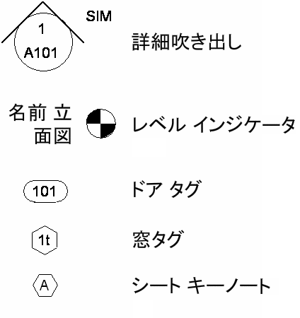 次の記号凡例は設計図書セットで使用される注釈記号を表しています。