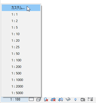 - ビュー コントロール バーで、ビュー スケールをクリックし、[カスタム]を選択します。