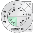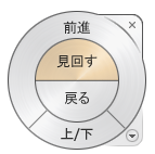 [見回す]ツールで見回す いずれかのフル ナビゲーション ホイールまたはビルディング ツアー ホイール(ミニ)を表示します。[見回す]ボタンをクリックして押したままにします。マウスをドラッグして、見ている方向を変更します。マウス ボタンを離すと、ホイールに戻ります。
