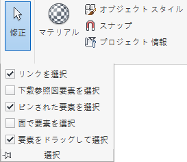 リンクとその要素が選択可能になっていることによって、プロジェクト内の要素選択に支障をきたす場合は、このオプションを無効にします。[リンクを選択]が無効な場合でも、リンク内の要素へのスナップと位置合わせは可能です。