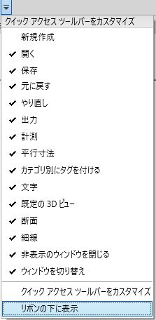 クイック アクセス ツールバーはリボンの上または下に表示することができます。設定を変更するには、クイック アクセス ツールバーで、[クイック アクセス ツールバーをカスタマイズ]ドロップダウン リスト