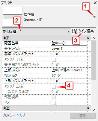 通常、Revit LT セッション中はプロパティ パレットが開いたままになるため、次の操作を行うことができます。