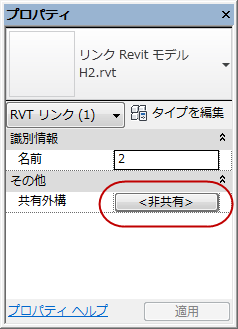 - [共有外構]プロパティの横にある[非共有]をクリックして、[外構を選択]ダイアログを開きます。
