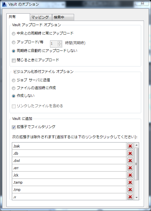 [Vault に追加]領域で、Vault に追加できないファイルの種類を設定します。