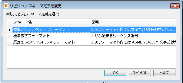 - [リビジョン スキーマ定義を変更]ダイアログ ボックスで、選択したファイルに割り当てる新しいリビジョン スキーマを選択します。[OK]をクリックします。