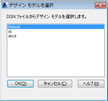 - インポートする DGN ファイルに複数のモデルがある場合は、[デザイン モデルを選択]ダイアログ ボックスが表示されます。