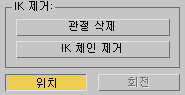 이 그룹의 옵션으로 관절에 대한 위치 또는 회전 엔드 이펙터를 추가 또는 삭제할 수 있습니다. 옵션은 현재 선택된 관절에만 영향을 미칩니다. 엔드 이펙터는 IK 체인이 솔루션에 도달하기 위해 따르는 오브젝트입니다. 위치 및 회전의 2가지 유형의 엔드 이펙터가 있습니다. 두 이펙터는 관절에 세 개의 파란색 교차선으로 표시됩니다. 엔드 이펙터 하나 또는 두 개를 가지는 관절을 선택하고 엔드 이펙터의 유형에 맞는 변형을 수행하면 하나의 엔드 이펙터만 변환됩니다. 그런 다음 체인의 오브젝트가 IK를 사용하여 IK 솔루션을 따르고 만듭니다.